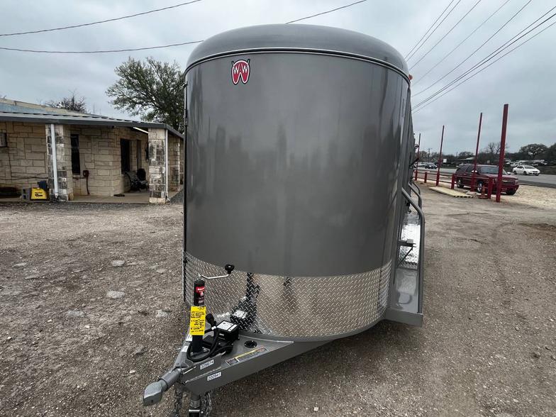 2025 WW 6’x16’x6’6” tall custom 3’ round nose storage for tack, feed, hay, show boxes ect. 2 tier removable saddle rack, walk in tack door, side access door to animals, full swing center gate, roughly 6’6” and 6’8” divided section, full swing half slide rear gate, 2/5200 # torsion brakes axles, treated floor.